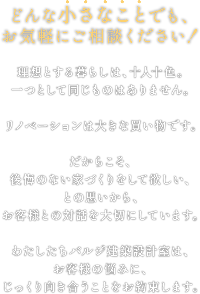 バルジ建築設計室では、お客様に安心して暮らしていただけるよう、健康、予防医学を意識した家づくりを